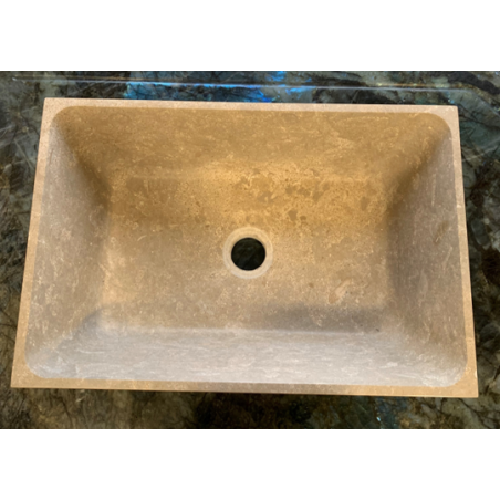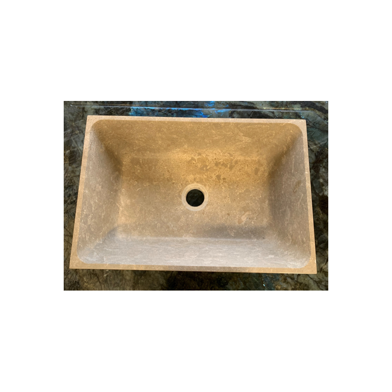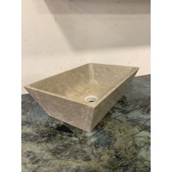 Vasque à poser avec coupes biaises et angles vifs, en Auberoche cendré finition adoucie.