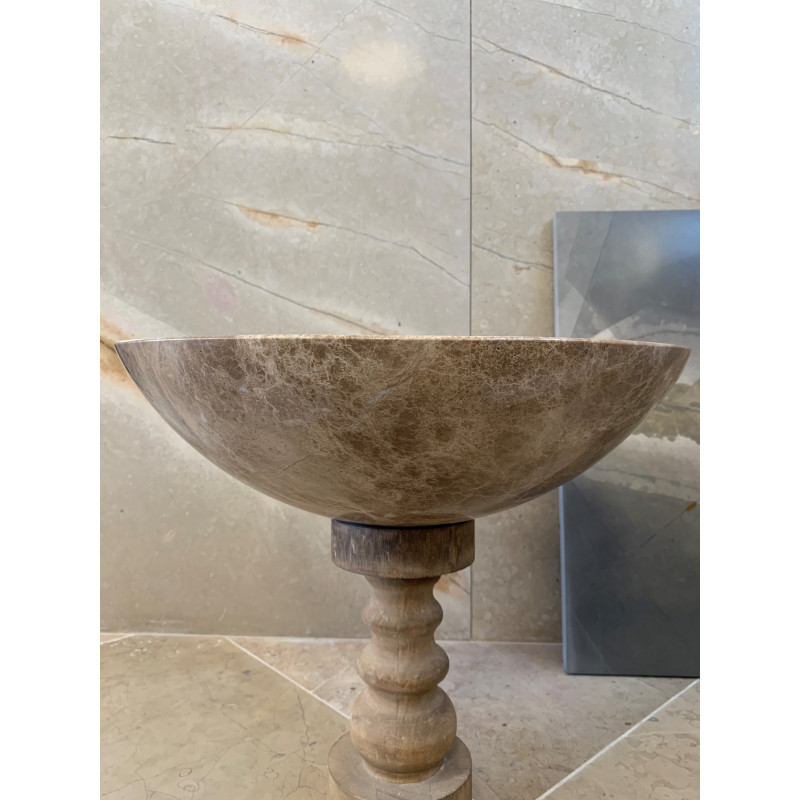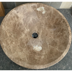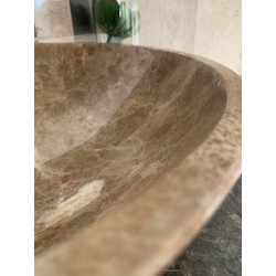 Le marbre, fait son retour en force dans toutes les pièces de la maison ! Dans la salle de bain, la vasque en marbre de couleur ocre en fait une excellente démonstration.
